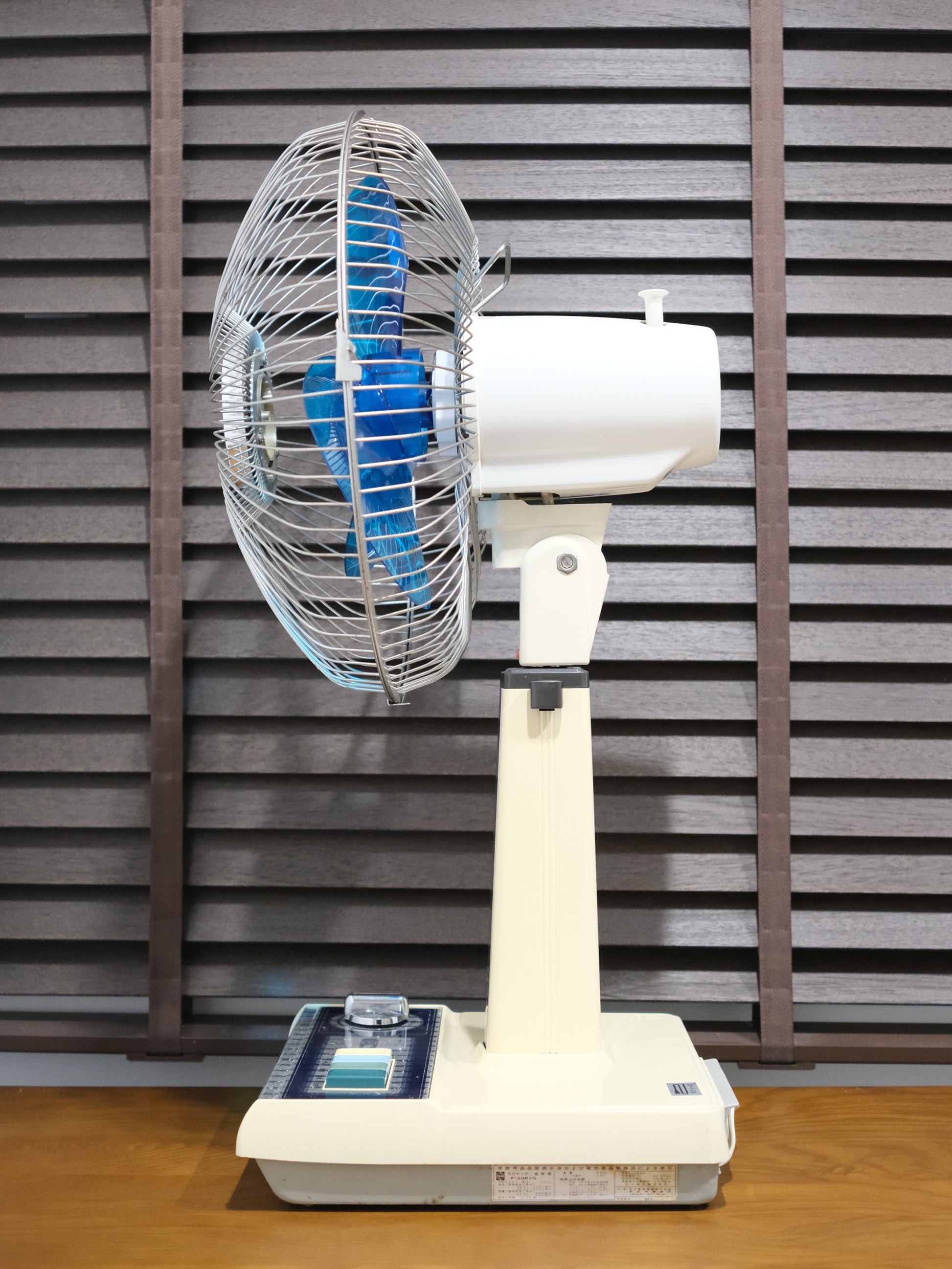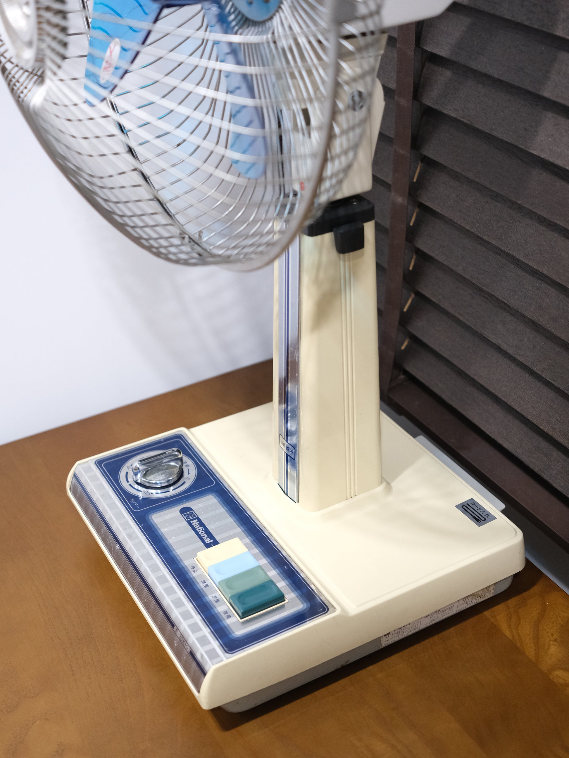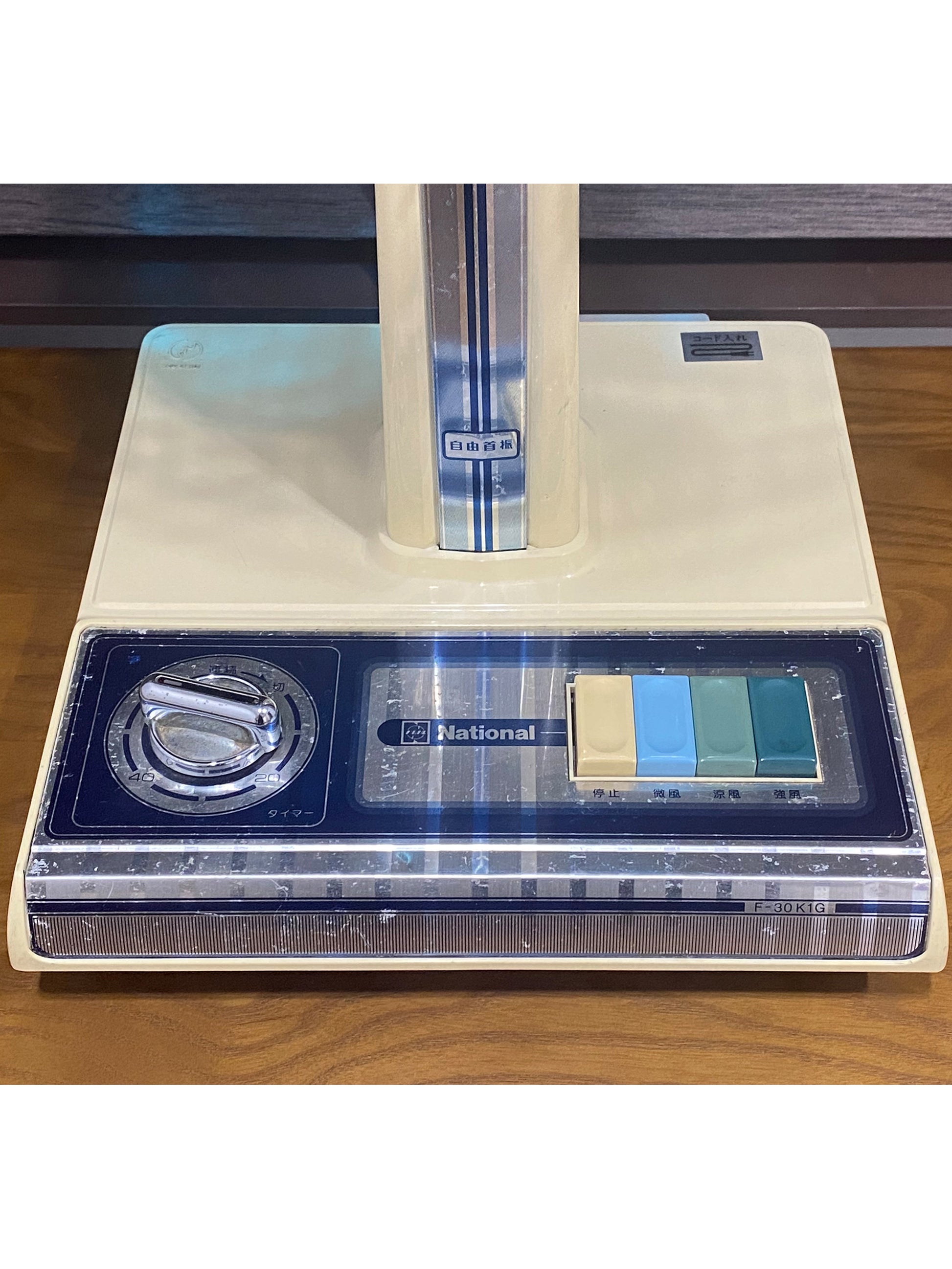 National出品,三段按鈕風速電風扇,可伸縮調校高度,69 cm - 85 cm高,機底背後有電線收納箱,係電風扇唔用嘅情況下,把電線收納得妥妥當當,但請注意一下,機身左面定時功能已壞,定時功能已不能使用,和在檢查風扇過程中,發現原裝的網罩固定白螺帽已列開損壞,本人已更換一個全新的,但不是原裝的(年代太久找不到,機身有小量凹凸和刮裂痕,其他風扇功能正常,三段風速亦沒有問題.