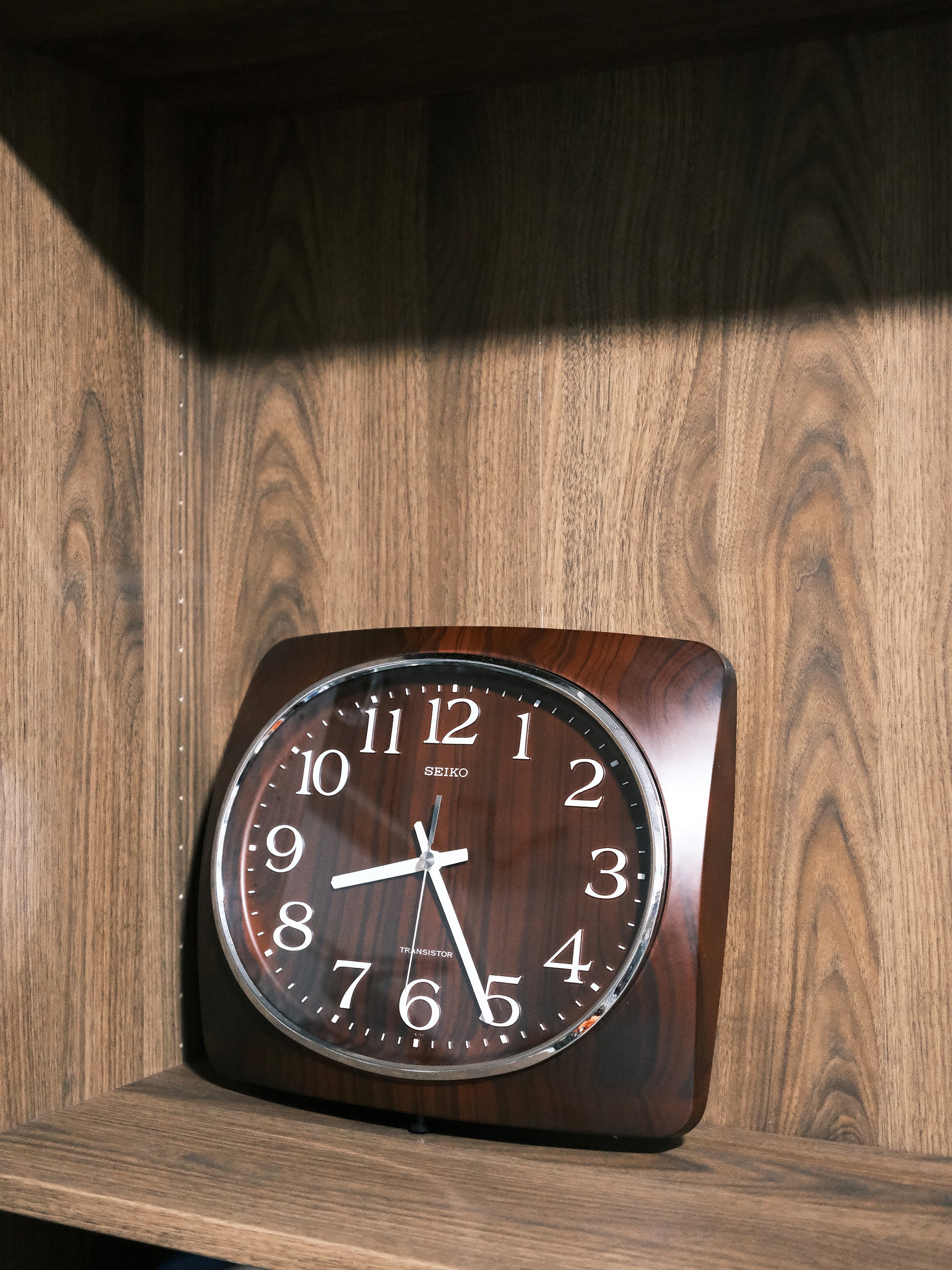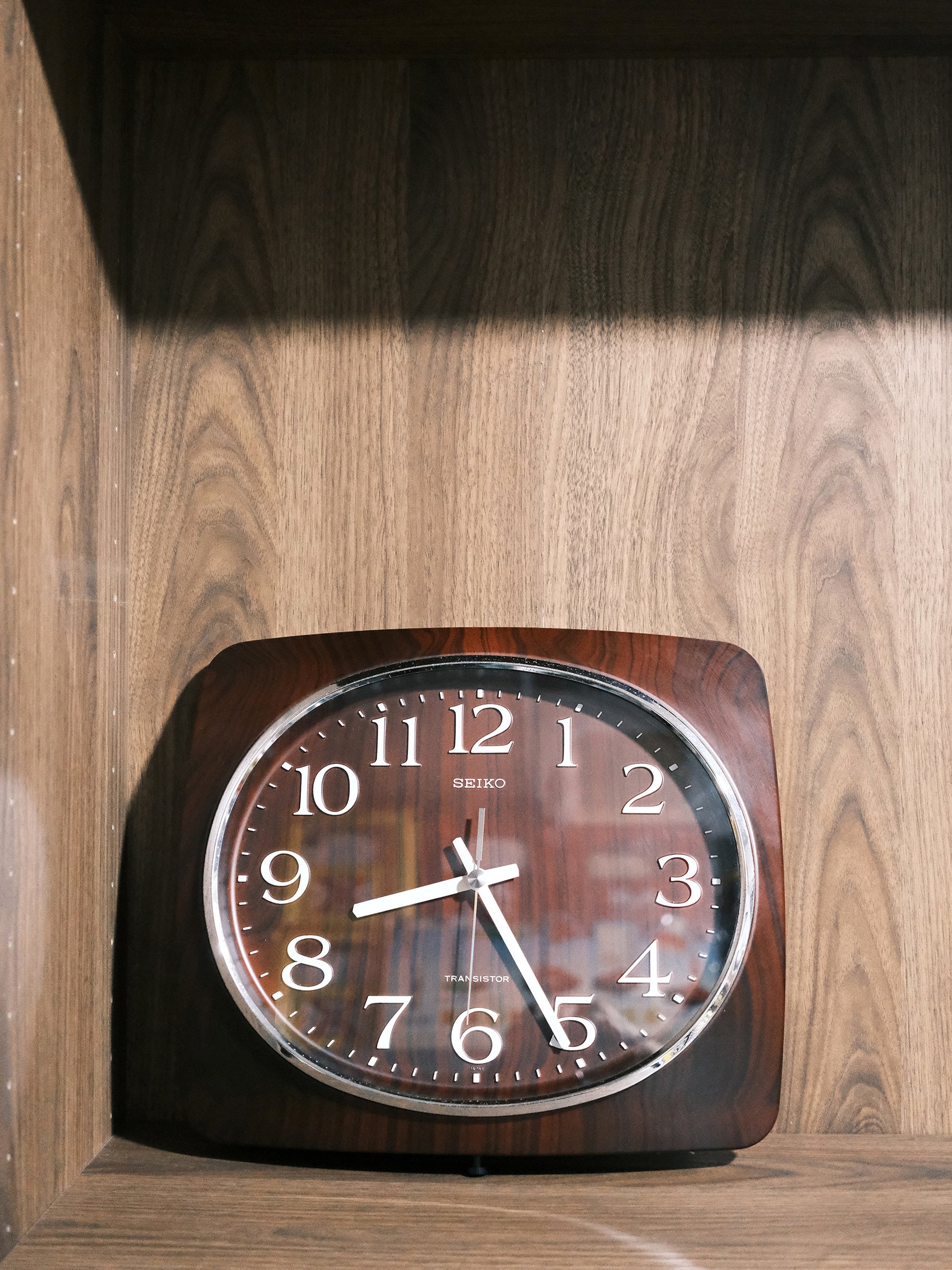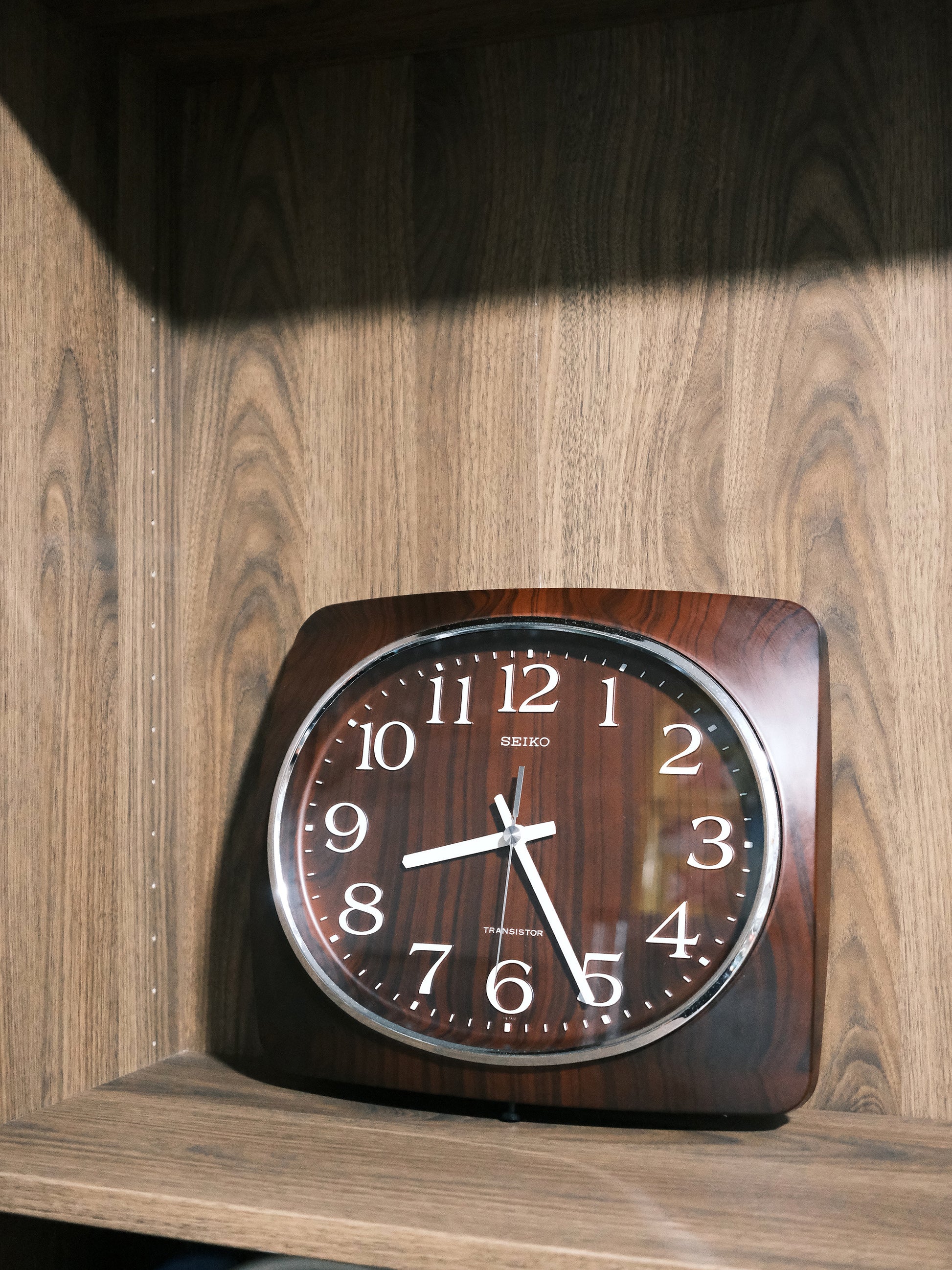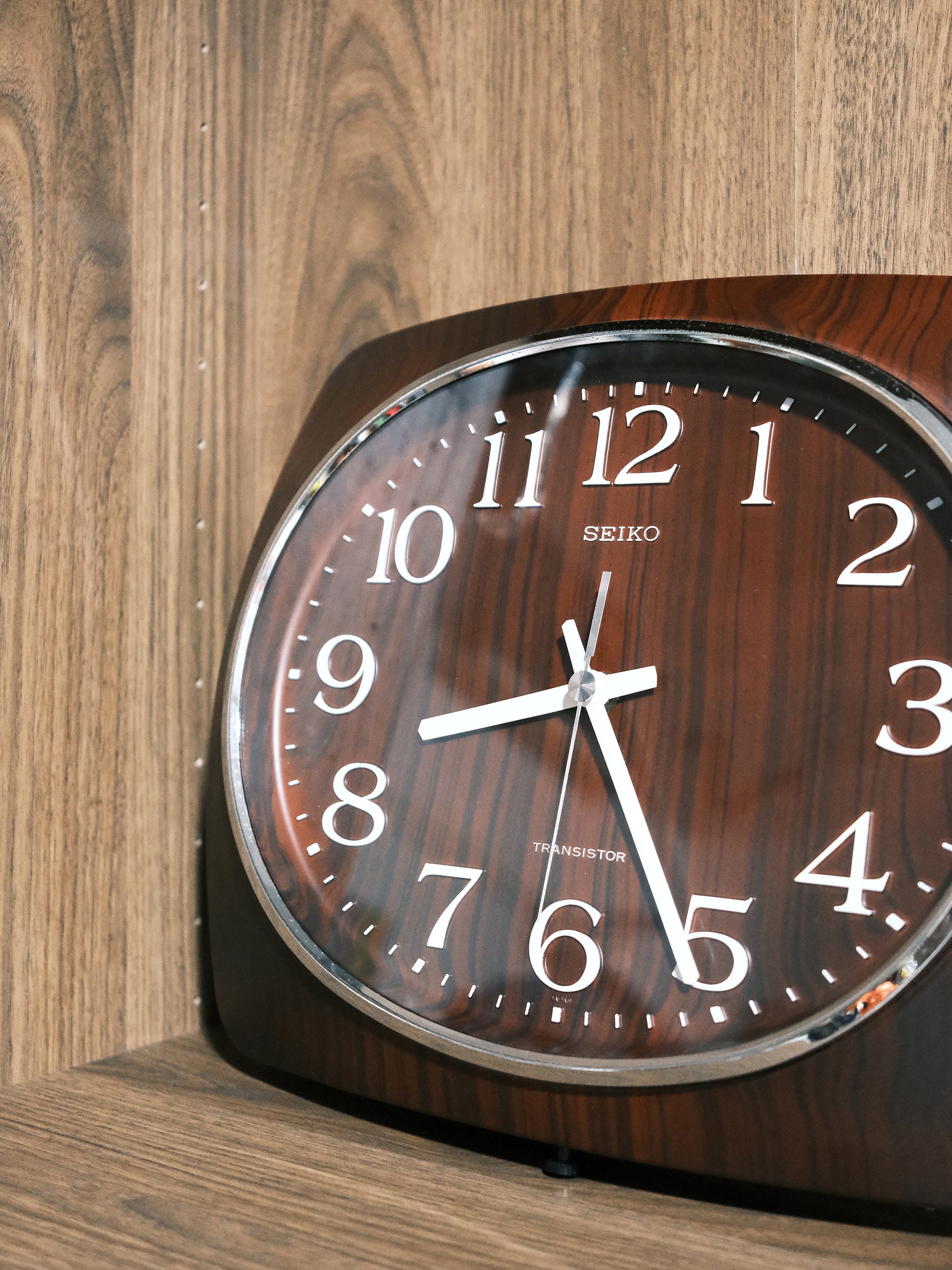美品 Seiko 精工 Transistor 圓方形 木紋 掛牆 石英鐘 掛鐘 Clock